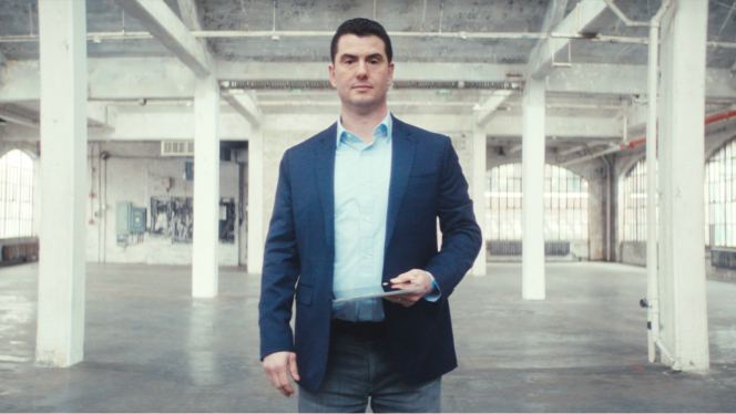A man carries a clipboard