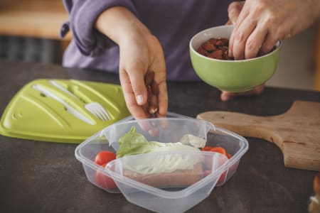 Intente planear sus almuerzos y otras comidas por adelantado cada semana. Tenga a mano refrigerios saludables que estén listos para comer durante el día.