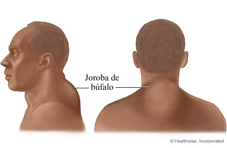 Una joroba de búfalo es una protuberancia de grasa acumulada alrededor del cuello y la parte superior de la espalda. Es un síntoma del síndrome de Cushing.