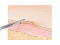 Una vez que se haya inyectado un anestésico local, se extrae toda la lesión con un bisturí. Se utilizan puntos de sutura para cerrar la llaga. Se aplica presión en el sitio hasta que el sangrado se detenga. A continuación, se cubre la llaga con una venda o un apósito estéril. Si la escisión es grande, puede ser necesario un injerto de piel.