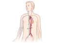 - La aorta abdominal. Este vaso sanguíneo grande baja por la parte posterior del pecho y del abdomen. Suministra sangre a la parte inferior del cuerpo y a las piernas.