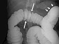 • Detectar hinchazón de la pared intestinal que se presenta en enfermedades inflamatorias intestinales. Entre los ejemplos se incluyen la colitis ulcerosa y la enfermedad de Crohn. El enema de bario también puede utilizarse para observar el progreso de estas enfermedades.