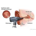 - Hay cerumen, suciedad o un objeto, como un frijol (habichuela) o una cuenta, que ocultan u obstruyen el tímpano en el conducto auditivo. Es posible que su médico tenga que limpiar el conducto auditivo antes de examinar el oído.