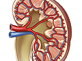 El marcador no fluye de manera pareja por los riñones, lo que indica un estrechamiento, un bloqueo o daños en los vasos sanguíneos o el tejido de los riñones. Esto también puede indicar una función renal deficiente.