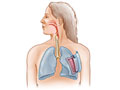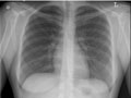Se observa líquido en los pulmones ( edema pulmonar) o alrededor de los pulmones ( derrame pleural), o aire en los espacios que rodean el pulmón ( neumotórax).