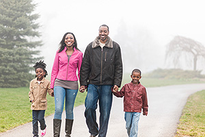 Use una aplicación para teléfono móvil o consiga podómetros y trate de aumentar la cantidad de pasos que den durante sus caminatas familiares. Comience con la meta de 10,000 pasos al día.