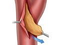 La cirugía en las arterias se llama endoarteriectomía carotídea. El médico hace un corte en el cuello y extrae la placa de la arteria.