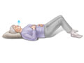 - Acuéstese boca arriba o recuéstese con la espalda apoyada sobre varias almohadas.