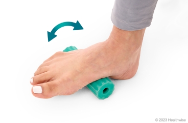 Mueva el pie de atrás hacia adelante sobre el objeto para masajear la planta del pie.