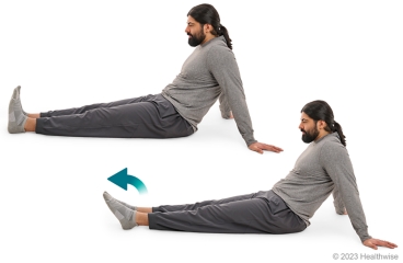 Siéntese en el suelo, con el talón del pie afectado en el suelo. Utilice una mano para mantener el pie estable.