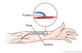 - Una fístula conecta una arteria con una vena en el brazo. Podría llevar varios meses hasta que se forme.