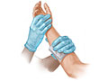 La compresión, o envolver la zona con una venda elástica (como una venda Ace), ayudará a reducir la hinchazón. No ajuste el vendaje demasiado, ya que eso puede provocar más hinchazón debajo de la zona afectada. Afloje el vendaje si le aprieta demasiado. Las señales de que el vendaje está demasiado apretado incluyen entumecimiento, hormigueo, aumento del dolor, frialdad e hinchazón en la zona debajo del vendaje.