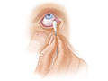 Aplicar medidas de primeros auxilios por una lesión del ojo en un niño puede ser difícil, dependiendo de la edad, el tamaño y la capacidad de cooperar del niño. Conviene tener a otro adulto que le ayude a tratar al niño. Mantenga la calma y hable con voz tranquilizadora. Utilice movimientos lentos y suaves para ayudar al niño a mantener la calma y a cooperar. Cuando un niño forcejea, puede ser necesario agarrarlo con fuerza para poder empezar a darle los primeros auxilios y a evaluar la gravedad de la lesión del ojo.