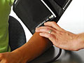 - Siéntese con el brazo ligeramente flexionado y apoyado sobre una mesa, de modo que la parte superior del brazo quede al mismo nivel que el corazón. Utilice el mismo brazo cada vez que se tome la presión arterial.
