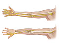 Compresión del nervio cubital. Esto es el pellizco del nervio cubital en la articulación del codo. En la mayoría de los casos ocurre con movimientos repetitivos.