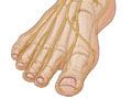 El dolor, ardor, hormigueo o entumecimiento que ocurre entre los dedos de los pies, especialmente el tercer y cuarto dedo del pie, y en la región metatarsiana puede ser causado por un crecimiento alrededor de los nervios (neuroma de Morton).